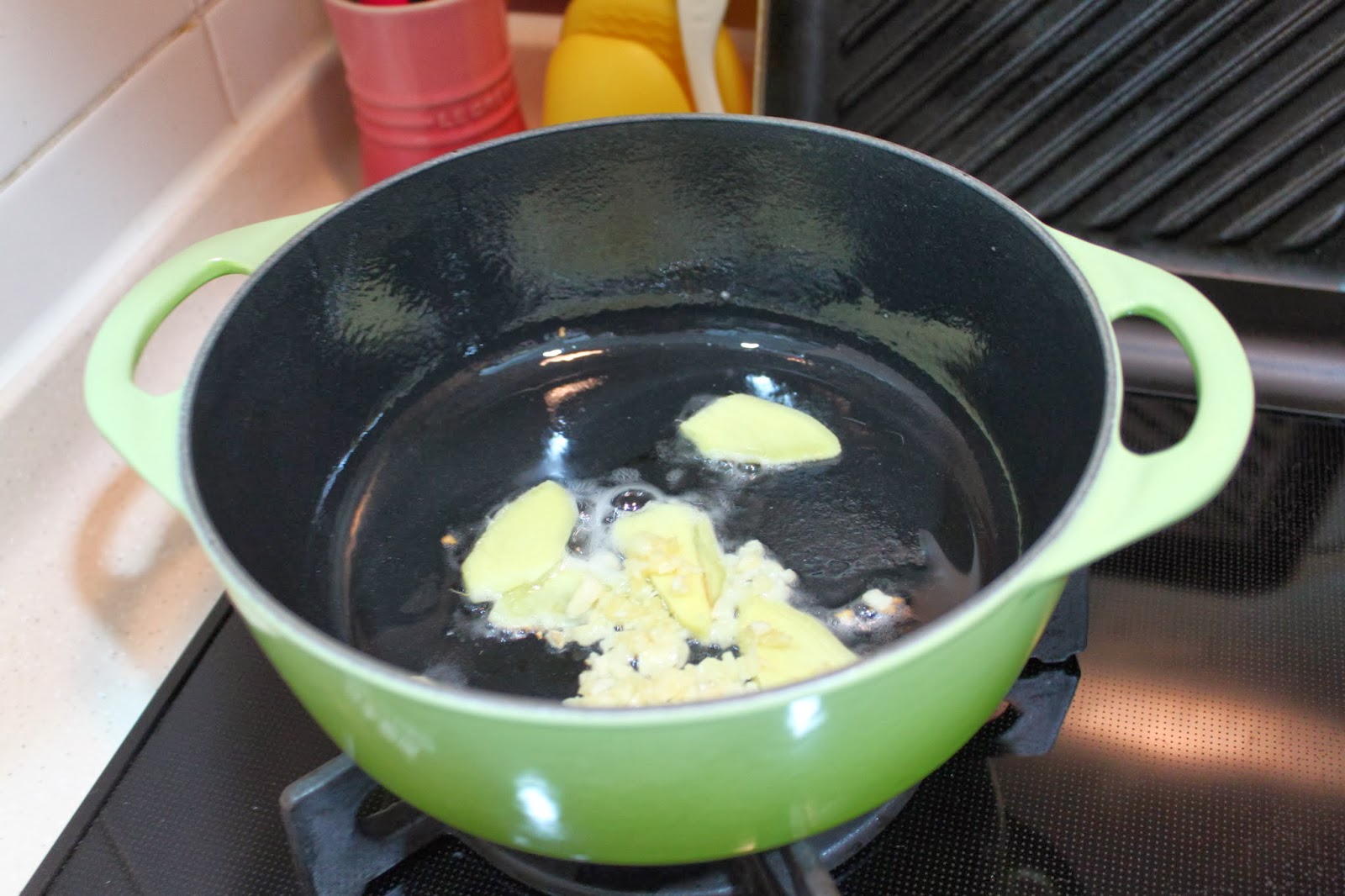 先把薑片及蒜茸爆香
