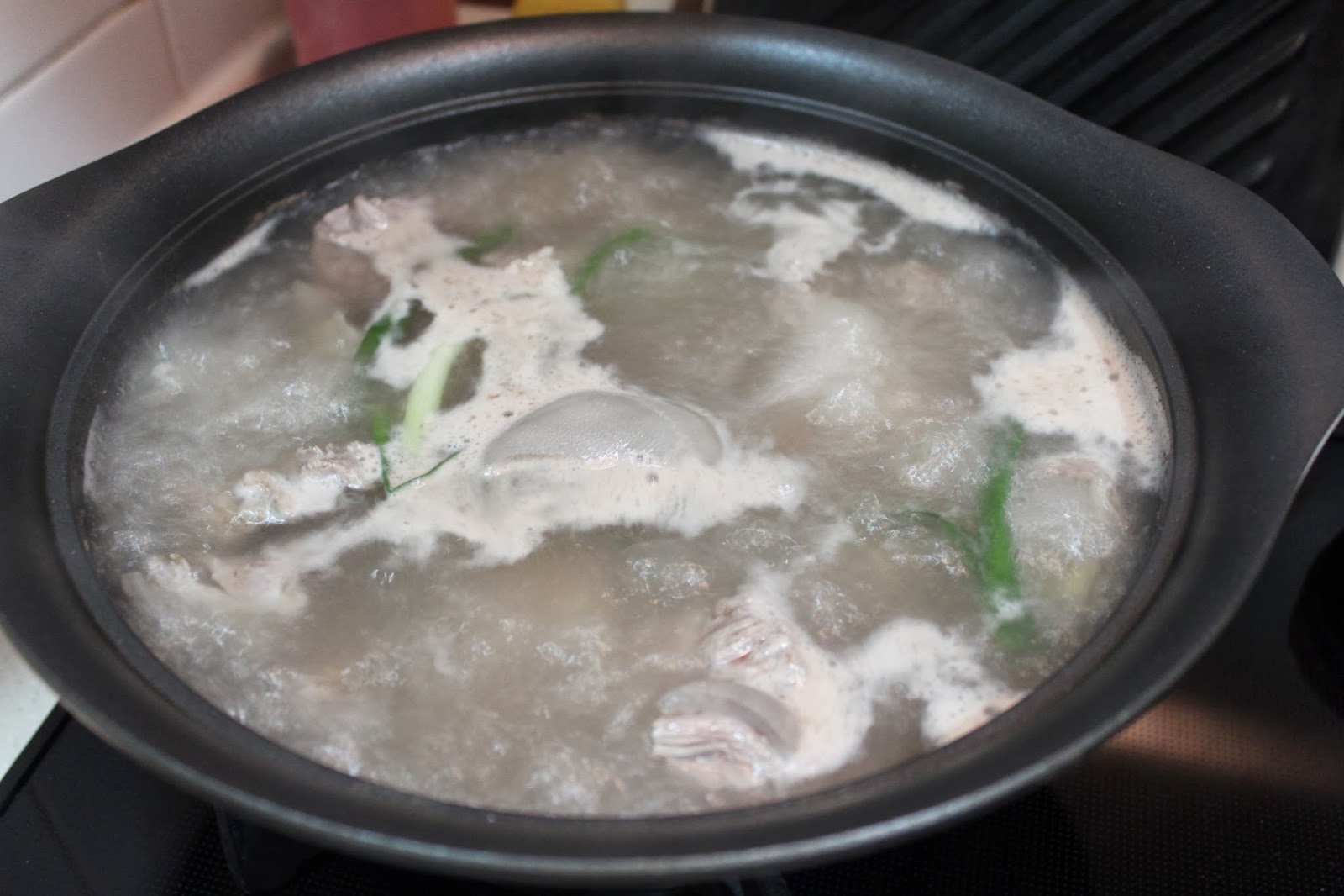準備一只鍋, 加入水, 數片薑片, 蔥段