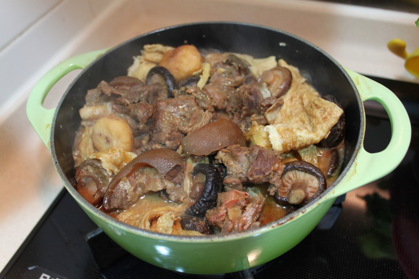 焗好後, 熱辣辣的枝竹馬蹄羊腩煲就完成了...