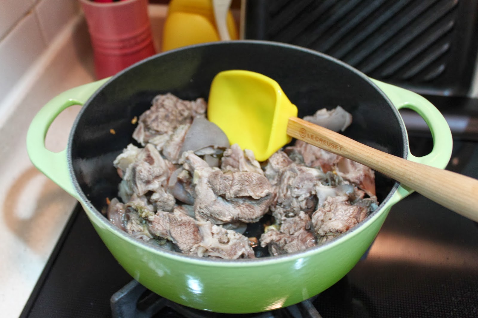 10分鐘後, 熄火, 把羊腩取出,