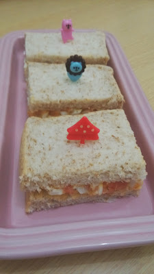 然後把煙三文魚蛋沙律鋪在包包上, 完成.