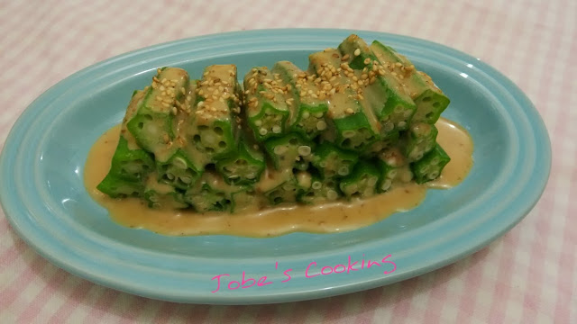 (1) 先把秋葵洗淨, 燒一鍋水, 加入少許鹽, 水滾後, 加入少許鹽, 加入秋葵灼1分鐘.
