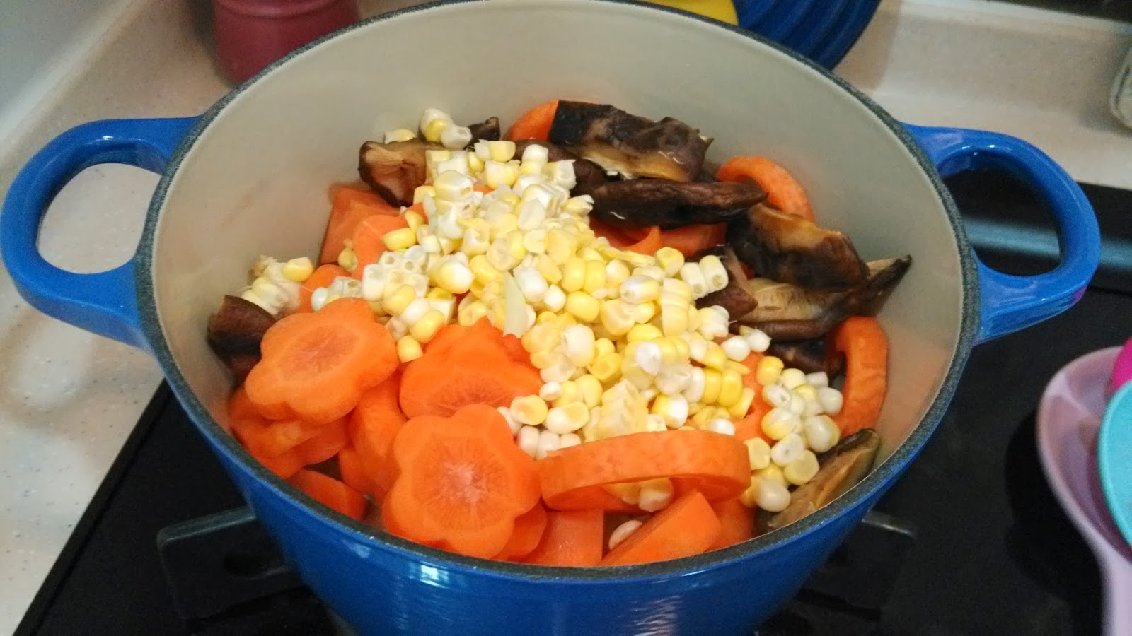 4. 下紅蘿蔔, 粟米仔, 冬菇