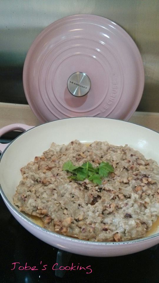 2) 碎豬肉, 土魷加入調味料拌勻, 放在LC BUFFET 鍋上.