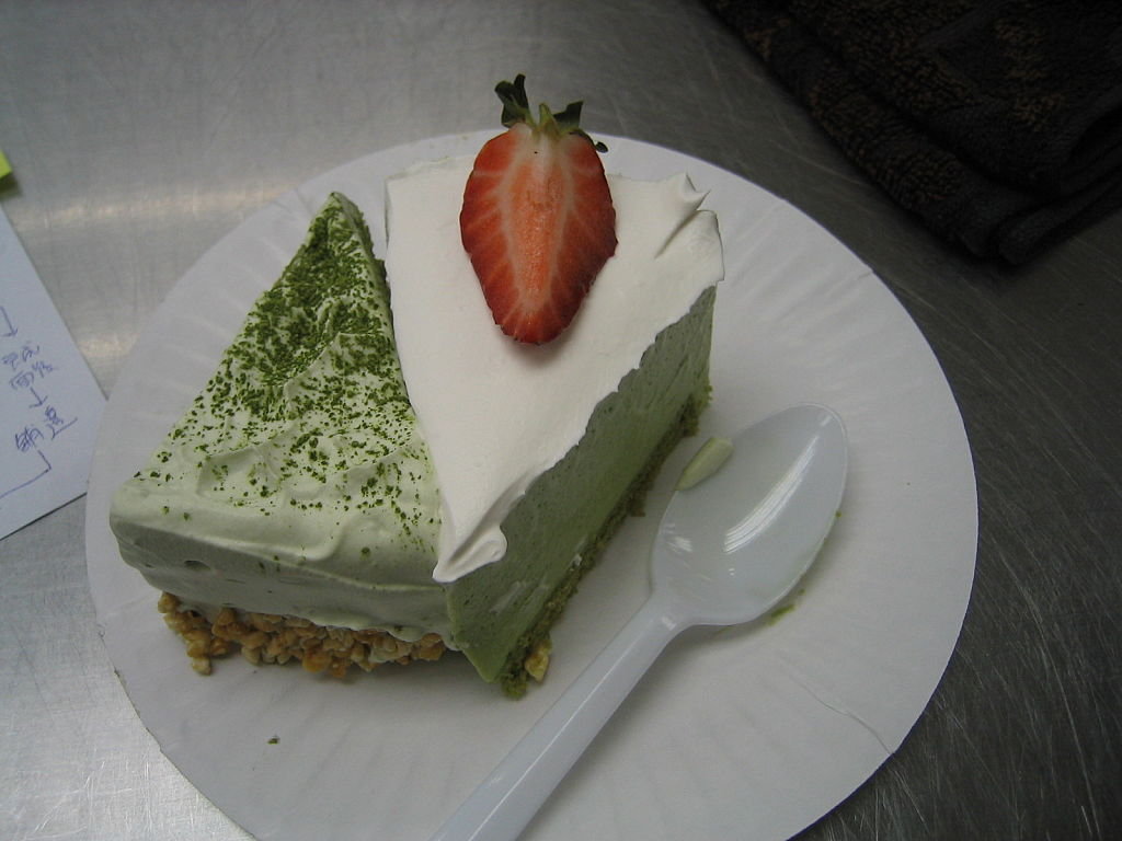 6. 將綠茶液加入忌廉用橡皮杓攪勻,攪時刮吓盆邊又刮吓個底,