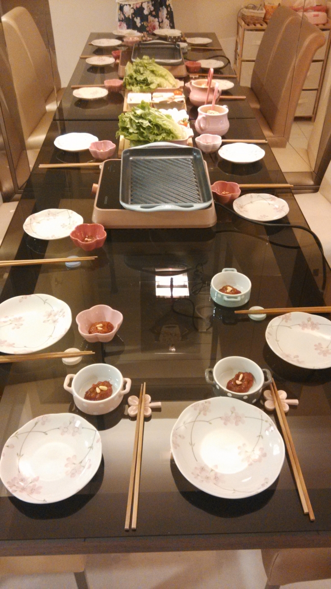 一上到馬太家, 巳看見簡單美麗的烤肉TABLE SETTING ^^