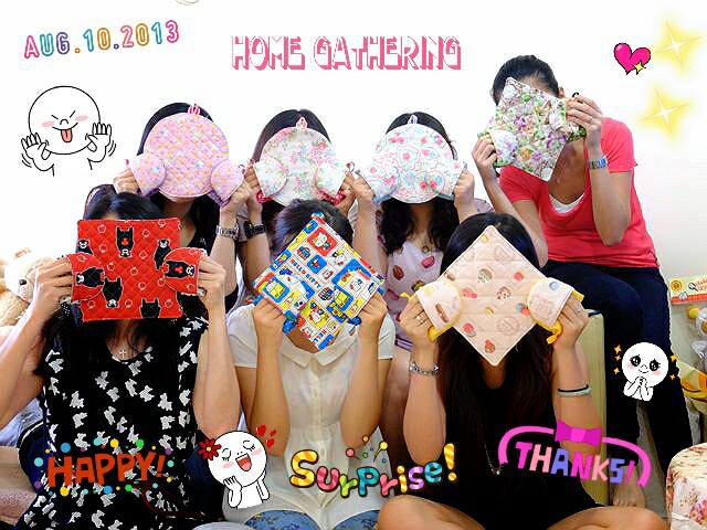 2013年8月10日(星期六) 敗婦們來我脾家gathering, 一直在想,很想親手做一些handmade的小礼物送給她們啊!Happy Cooking! 小小驚喜送給你们,看見你们收到的開心look , 我十分開心滿足,感謝您們常給我Happy Moment! (如果維媽,小杯及豪姐都能來, 就好了!) 十分喜歡這張大合照.....其實我們在隔熱墊背後, 都笑到KAKA聲嫁....這樣拍.......好似好型喎....一吓子做了七套....每一SET都設合每一位... 看全文 -