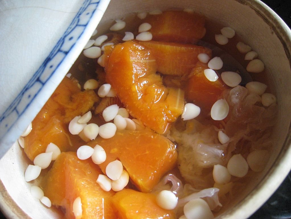 南北杏蜜棗燉木瓜 材料: 木瓜, 雪耳, 蜜棗, 南北杏 調味: 冰糖 做法: (1) 木瓜洗淨, 去皮, 切塊. (2) 南北杏及雪耳均泡水, 和蜜棗先淨備用. (3) 煲鍋中倒入滾水, 加入所有材料及冰糖, 移入蒸鍋中隔水蒸燉90分鐘, 即可. 完成... 木瓜所含的木瓜酵素, 可幫助消化, 清理腸胃, 具有整腸的作用; 木瓜果肉含有大量的b胡蘿蔔素, 能有效對抗破壞做人體加速衰老的游離基. 南北杏可... 看全文 -