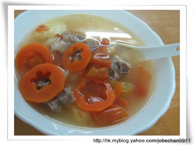 蕭C奶最鐘意飲的其中一款湯水 就係... 蕃茄薯仔紅蘿蔔煲排骨湯 因為蕭C奶勁愛蕃茄囉... 呢款湯水係天氣炎熱及入秋時 最愛煲這款湯水 因為這款湯水清潤之餘 仲可以有多個餸添.... 全部湯渣都好好食嫁.. 材料: 蕃茄3個, 薯仔2個, 紅蘿蔔 1個, 排骨 25至30元 做法: 將所有材料洗淨, 去皮, 切件 排骨出水, 備用 煲內放入適量水, 滾後加入薯仔, 紅蘿蔔滾一會, 後加入蕃茄及排骨, 煲個半至兩個鐘左右, 即可.... 看全文 -