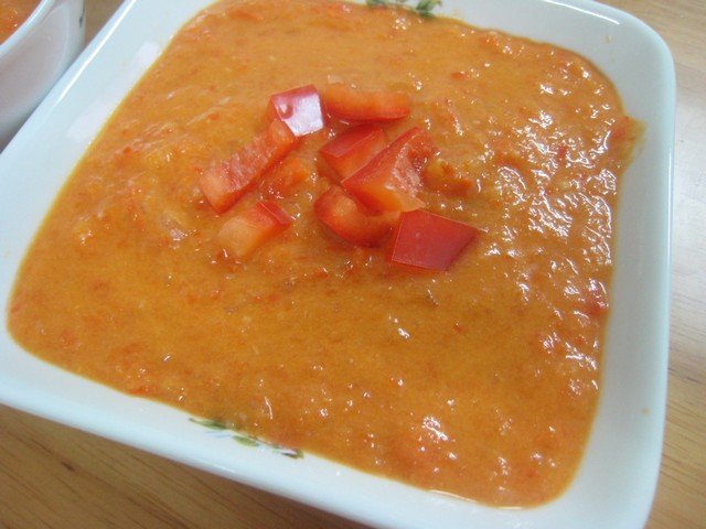 甜椒蕃茄湯 呢款湯好好飲嫁, 佢唔係好水咁的, 係有啲嘢食咁囉...酸酸哋係熱天嚟飲用, 都幾開胃, 不過因為佢都杰杰地, 所以飲完都飽飽哋嫁.... 我係做的過程當中, 覺得佢可以用嚟做意粉醬都得喎... 等我下次試吓整完配意粉食先.... 遲啲話比大家知, 正唔正? 材料 : 蒜蓉+乾蔥碎適量, 1個細洋蔥切粒 3個大甜椒切粒, 1個蕃茄切粒, 1罐雞湯(大約420ml) ... 看全文 -