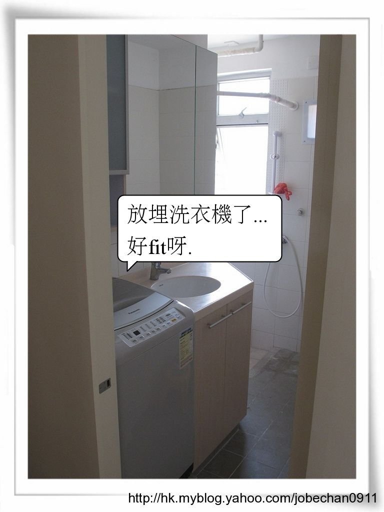 由細到大都用慣咗日本上揭式的洗衣機 初時呢間屋, 係要你將洗衣機放係廚房 而且個位仲要迫你只能用細型的大眼雞洗衣機 一向唔like大眼雞的我.... 初時好唔開心嫁.... 不過最後經過咗我的改動及設計 叫咗師父改位, 又經過少爺的悉心設計 將浴室門改細之後 就可以用到我喜愛的洗衣機之餘 仲可以將洗衣機放埋係浴室到 咁原本廚房的洗衣機 就可以放雪櫃係入面了... 琴日送了洗衣機嚟 日日都擔心個位放唔到 而家唔駛擔心了... 看全文 -