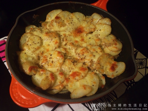 因為要拍攝新書的關係,廚房剩了一堆沒用完的食材,我家那隻環保惜食小先鋒,在我耳邊一直嗡嗡嗡的唸了一整個星期後,索性捲起衫袖,把食材都努力都用光光去。其中一樣剩下來的食材,就是馬鈴薯了,雖然還可以放一陣子,但某胃不用光是不會甘心的,所以昨天的晚餐,就由胃大廚來顯身手。