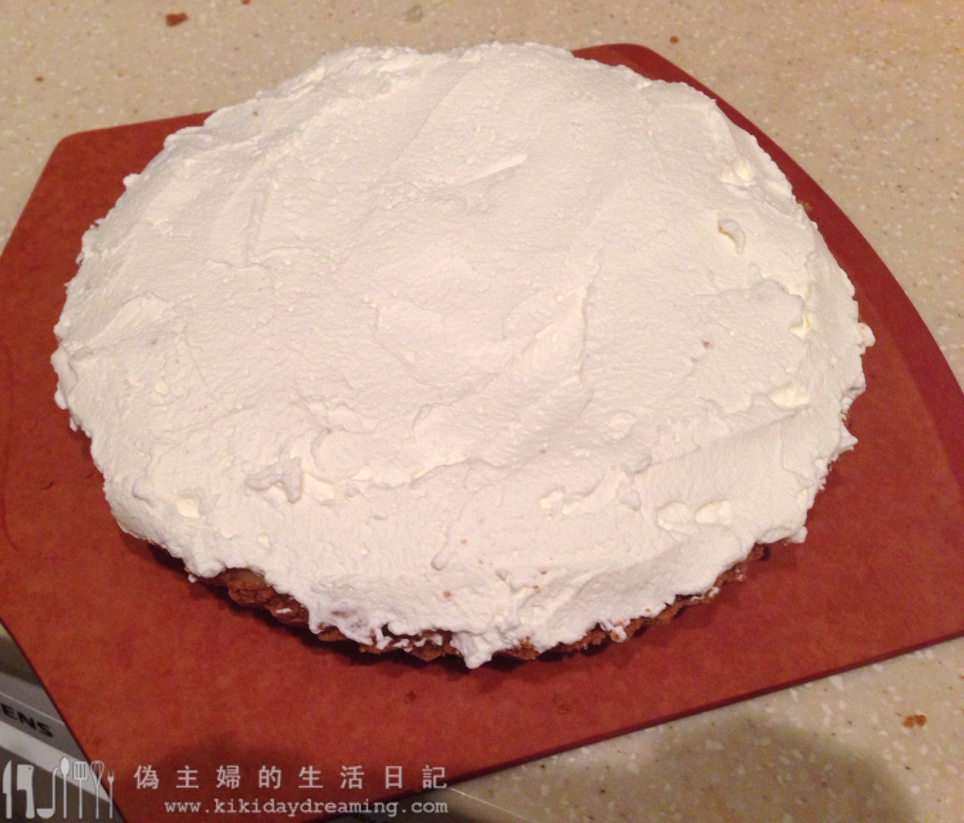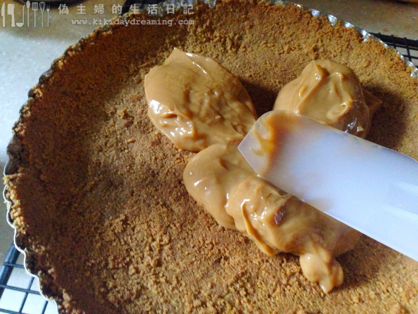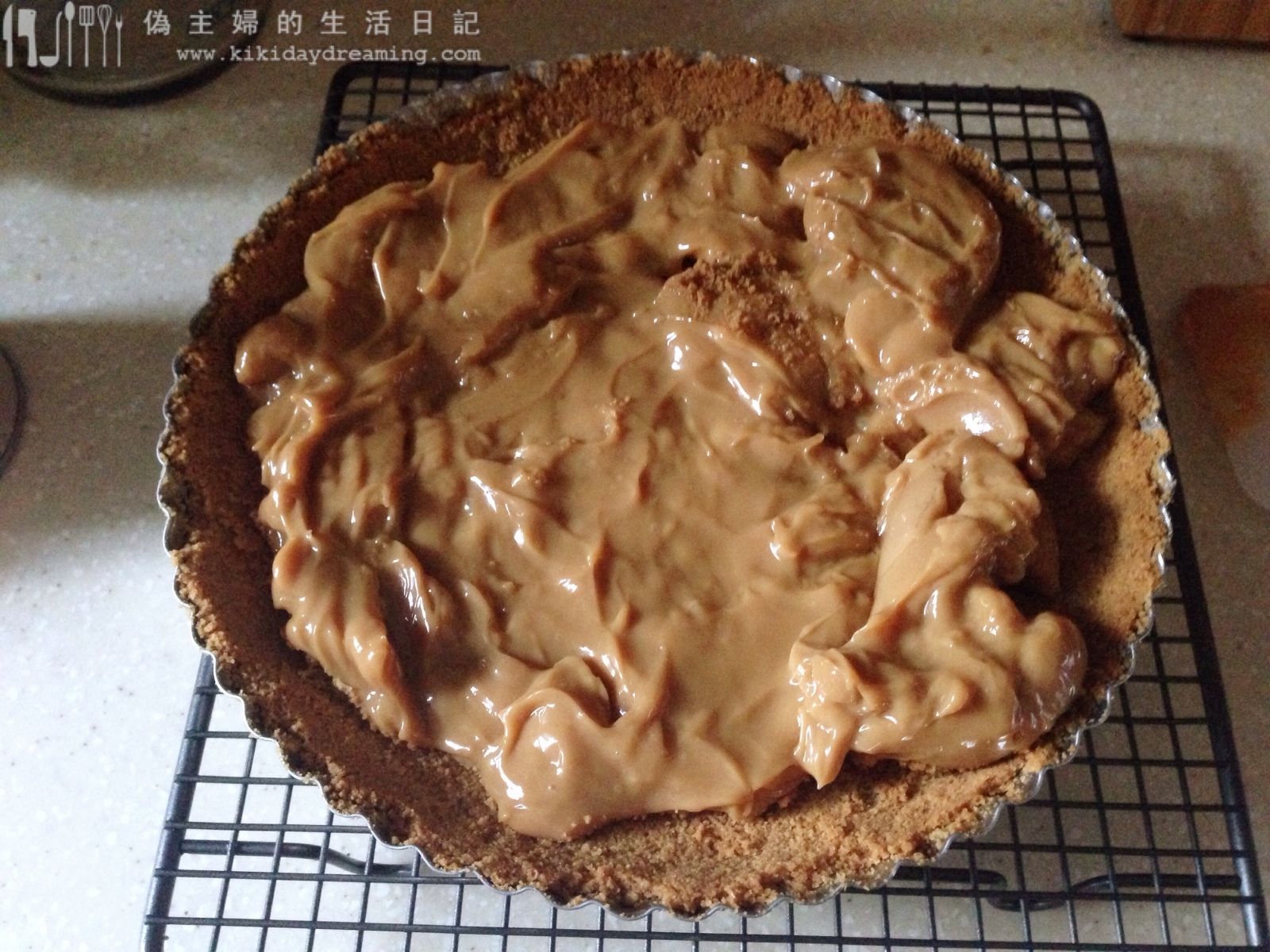8) 再鋪上焦糖上面,然後整個派放到冰箱(下層)冰1至2小時
