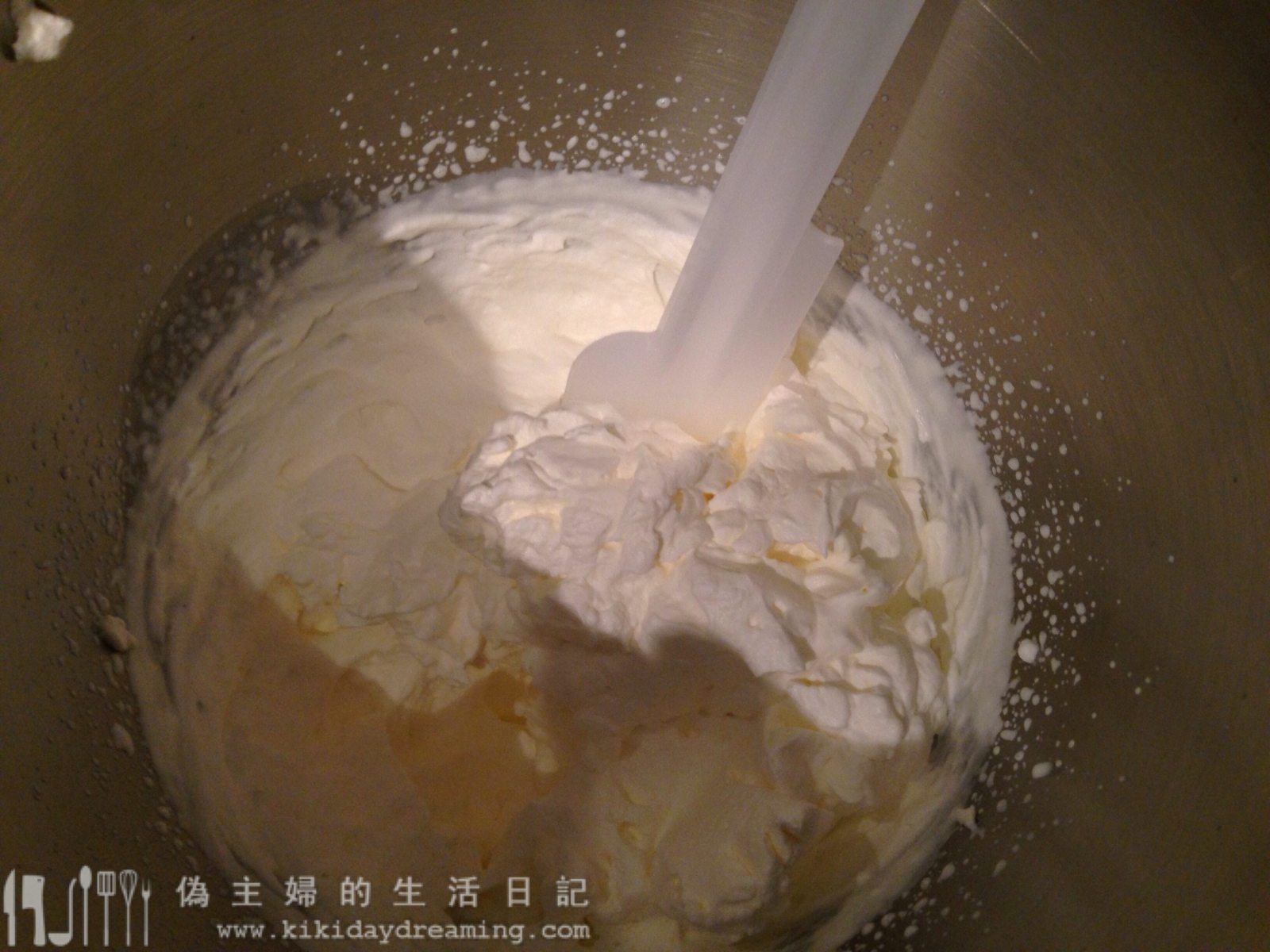 10) 打到挺身就可以了(這陣子很喜歡自家制的牛油,所以用剩了的鮮奶油,我就索性繼續打發讓它變成牛油)
