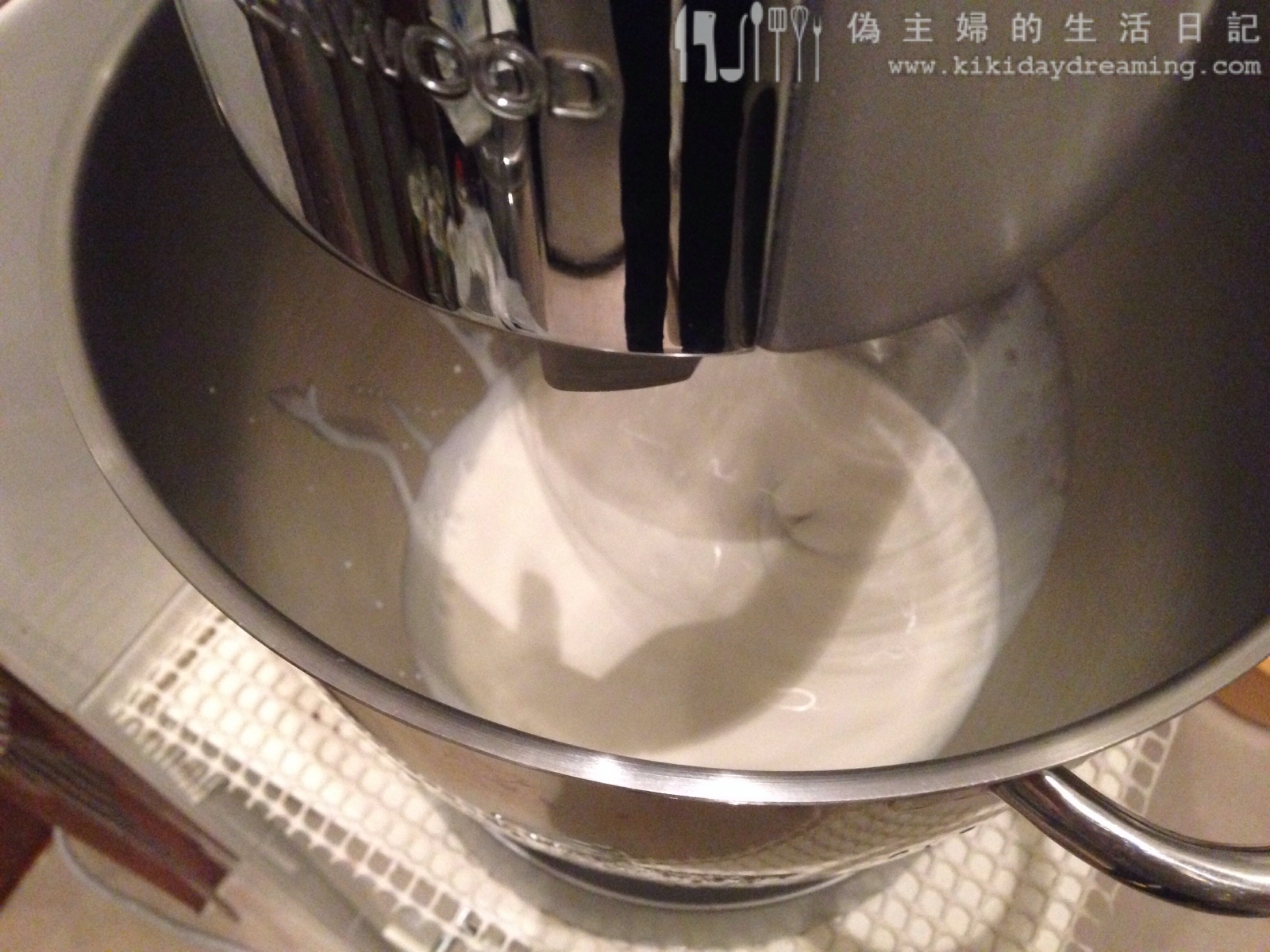 9) 打發鮮奶油,記得盤子不要有油或水,否則打不起的