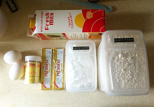 材料跟之前偽弟分享過的差不多,分別在於多了覆盆子果泥,然後因應加了果泥而調整了的麵粉和糖份量