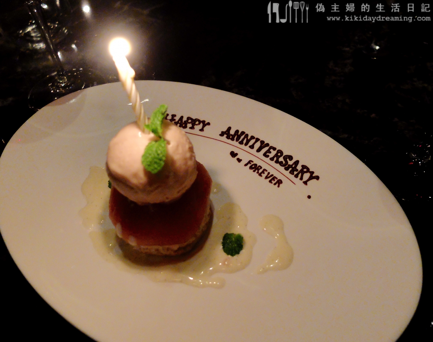 甜點呢,就是香梨塔配雪糕,美國胃偷偷的請餐廳安排在甜點上寫了小驚喜