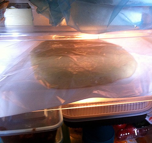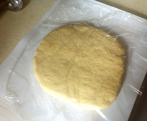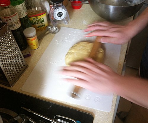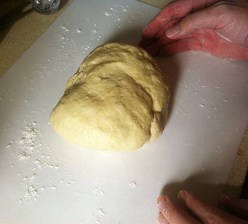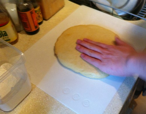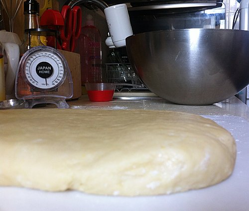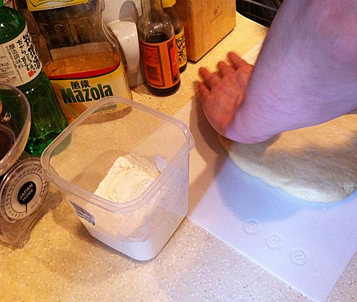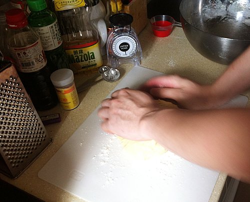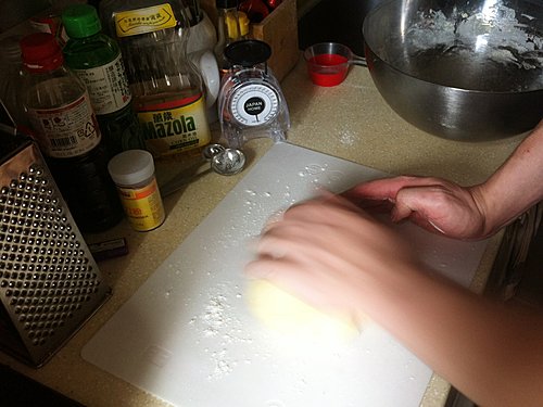 (11) 然後稍為將麵團搓一下(大約是用手把麵團拍平,然後對摺再拍平,大約2-3次)