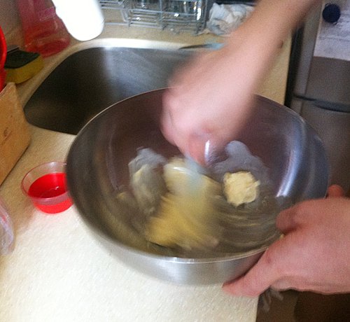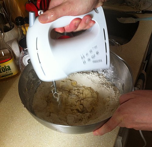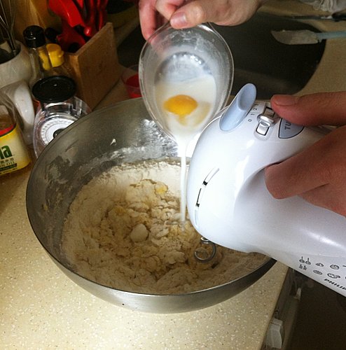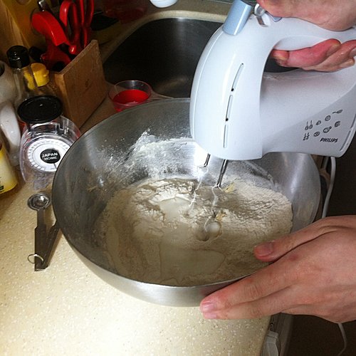偽弟說要做好吃的Scone,打發麵團是最重要的,要將材料充份打勻之餘,麵團又不可以有太多的筋性(又不能完全沒有),簡單點來說打發的時間越短就越好。有Kitchen Aid這類專業的機器當然好,用手提的攪拌器不是不可以,但就不會完美了(我家就只有手提的,偽弟你就將就點用吧)。