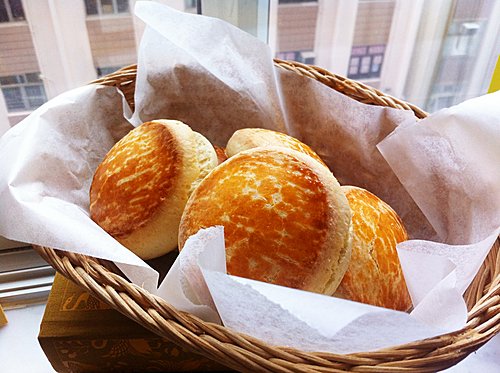 偽弟說因為是家用烤箱,而且我的烤箱火力太溫柔,底火又不夠(所謂的神兵利器也有缺點呀),所以沒有辦法做得更漂亮了。但是在我眼裡已經是超漂亮又好吃了,而且很難得吃到貨真價實新鮮直接從烤箱出爐的Scone呢!