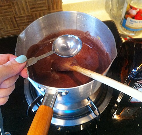 (13) 再加入2 Tablespoon放涼了的煮梨紅酒