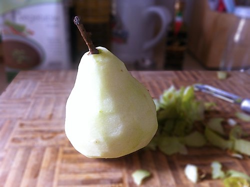 (4) 洋梨去皮,如果想再講究一點,就去芯都去掉(我懶沒有)