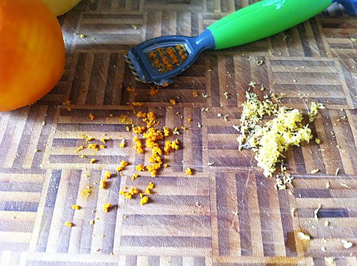(1) 先將檸檬和橙皮有顏色的部份刨出,小心不要刨到白色的部份