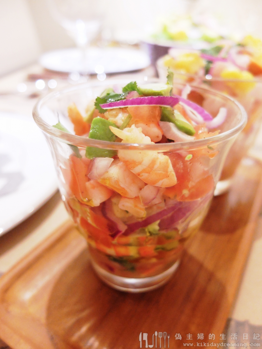 為配合一下古巴的主題,也做了另一款古巴Ceviche,做法差不多,只是用了熟蝦子,另外也加了些肉桂丁香等的香料,同樣很受大家歡迎