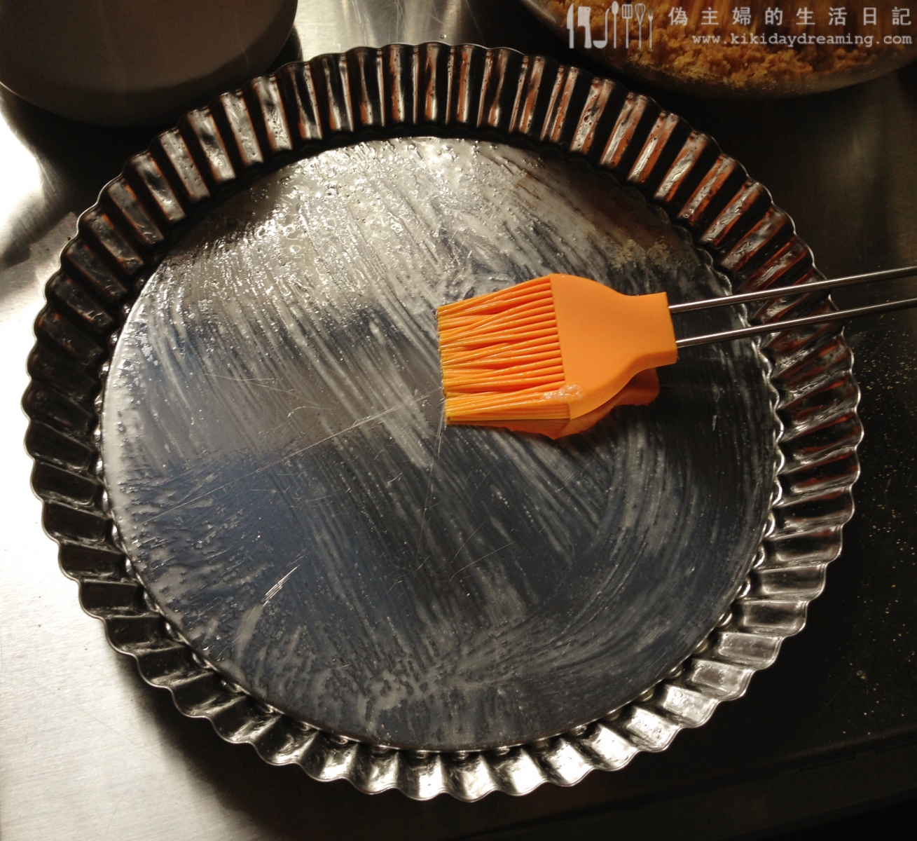 5. 派盤掃上一層油,想更容易脫模的話,可以在底部鋪一塊牛油紙