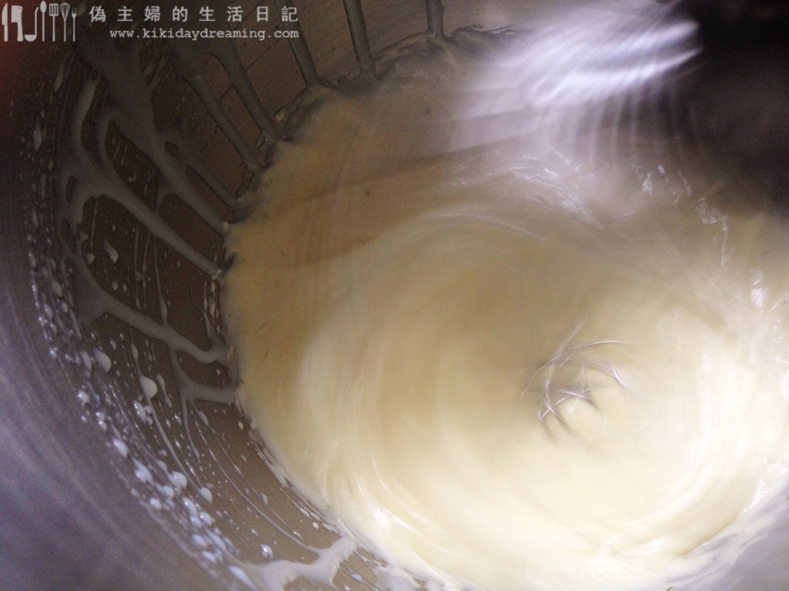 11. 大約拌至稠身顏色變淡就可(要知道怎麼才算拌好,大家可以來參考甜點師偽弟的示範影片)