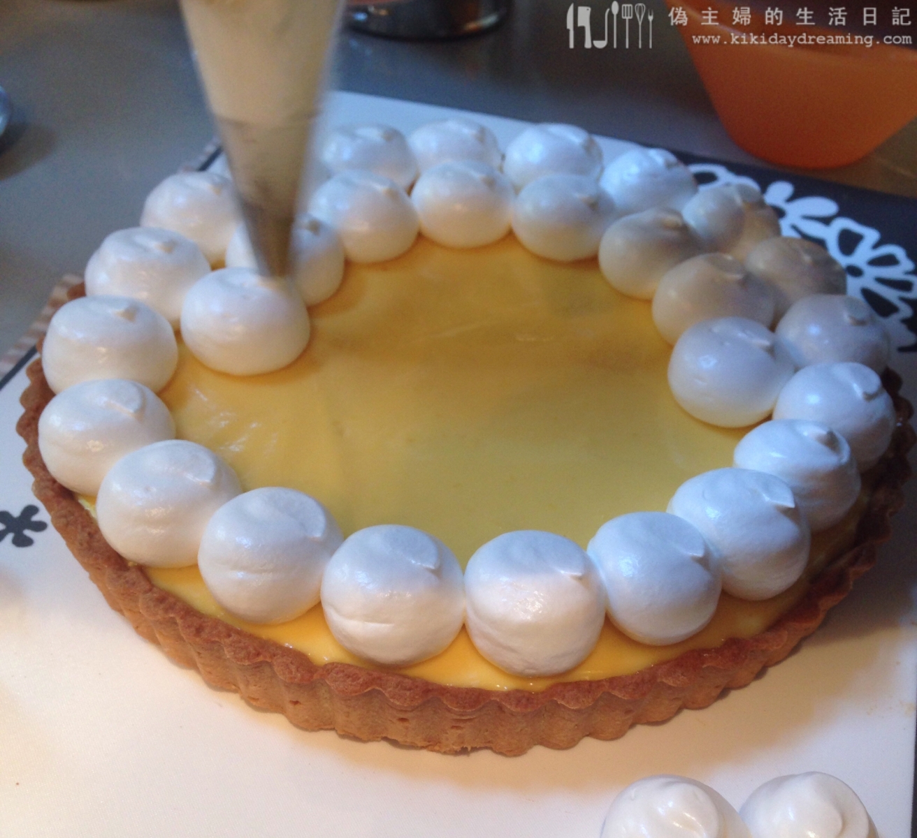 19. 然後把蛋白霜擠到派面去,偽弟這一個美美的球狀好難擠,不是師傅的我們可以做我的那款,把擠咀輕輕向上拉就做到了