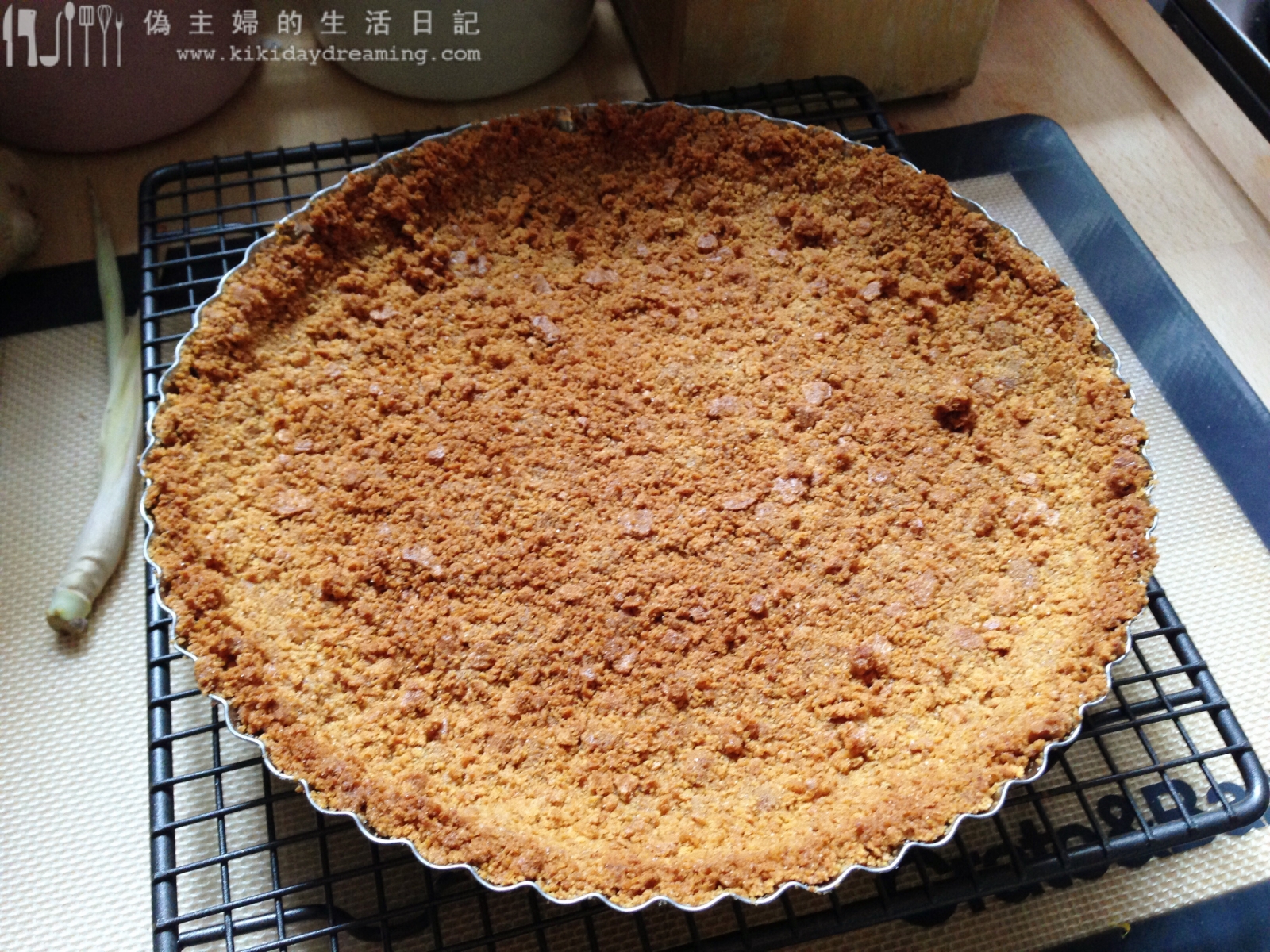 7. 烤箱預熱180C,把派底烤7-8分鐘至金黃,然後放涼