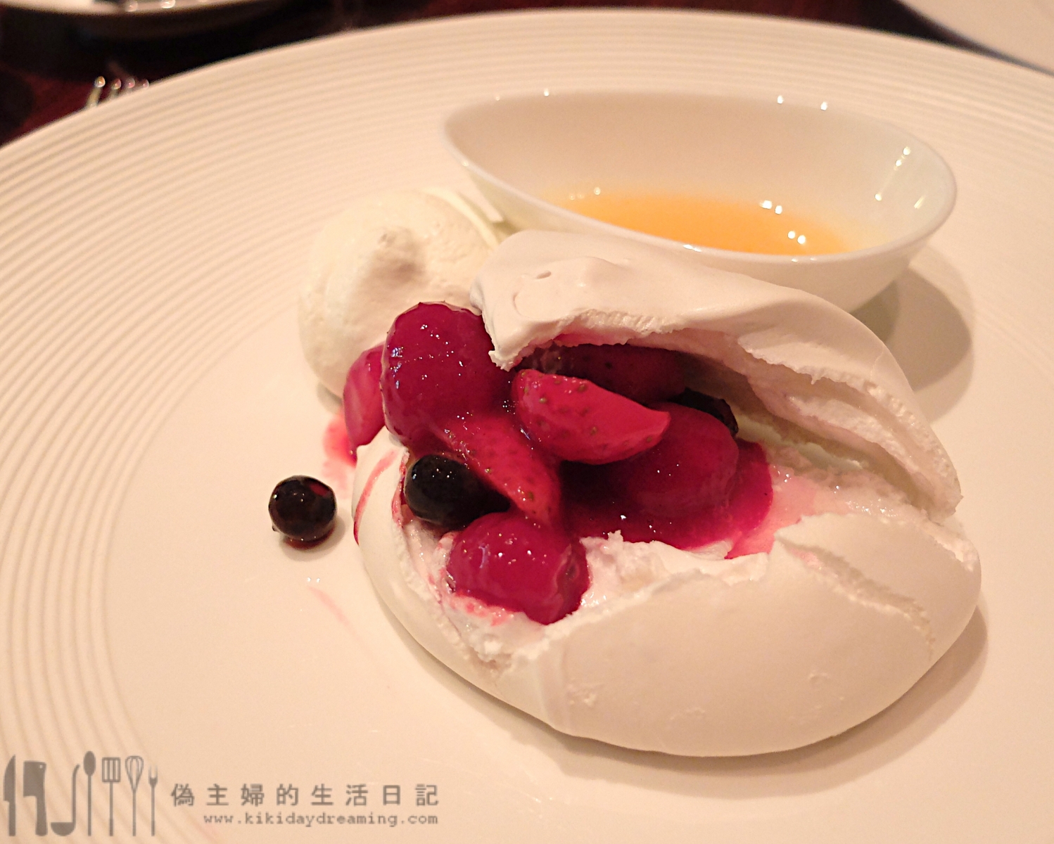 甜點時間,套餐裡的甜點我選了這道比較輕盈的Pavlova烤蛋白