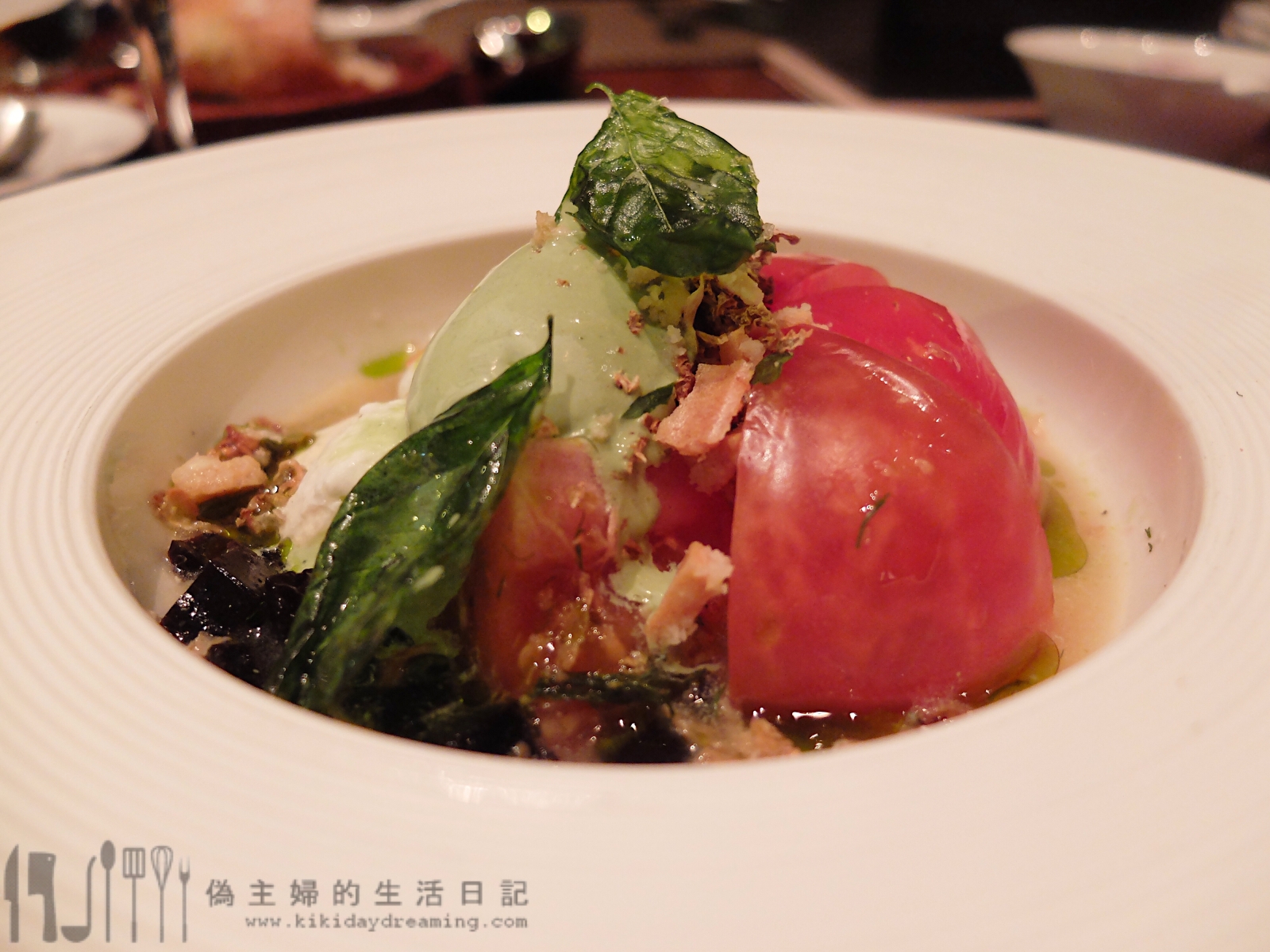 同桌的新朋友則點了番茄羅勒沙律,很特別的把羅勒做成雪糕,遲些我也要試試做做