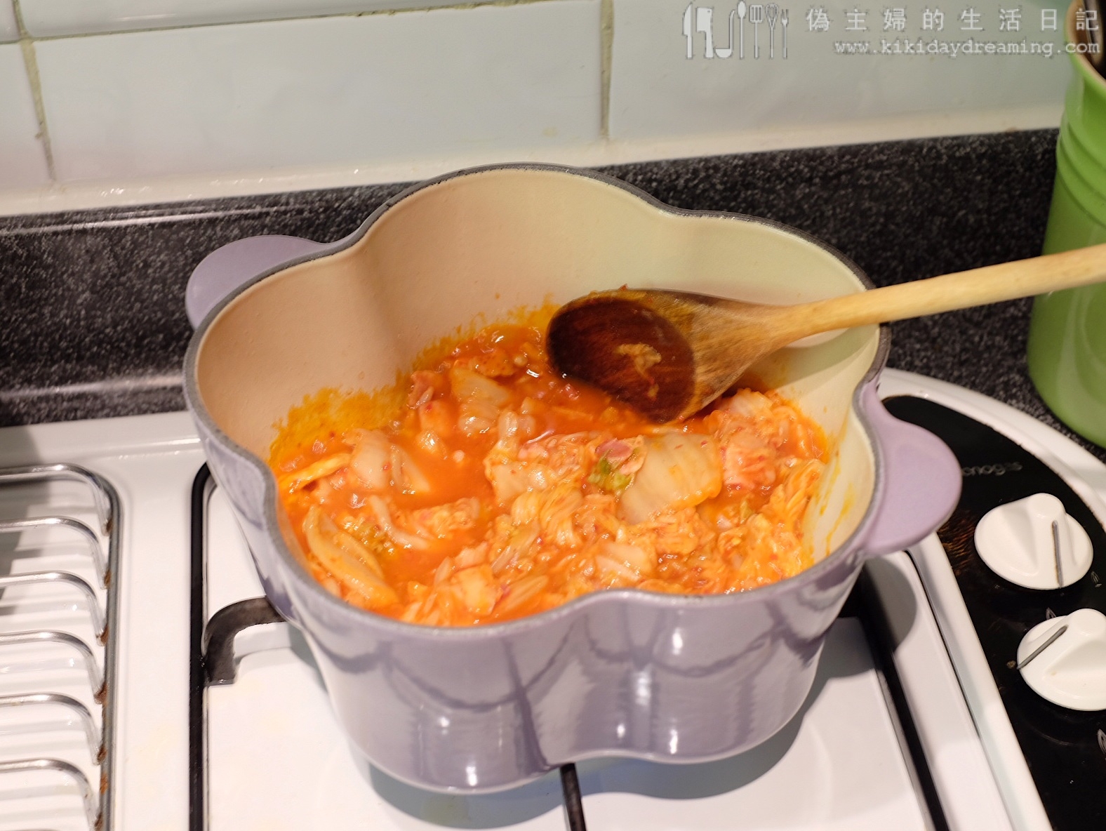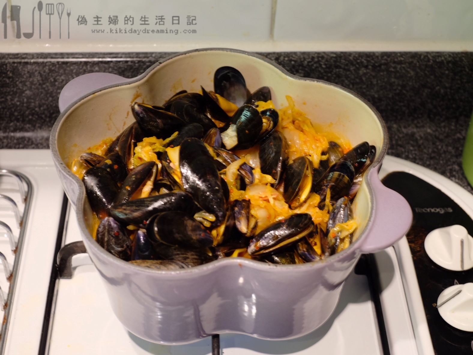 泡菜+鮮奶油真是無敵美味的組合,加上藍青口的鮮甜,整鍋都香辣濃郁好滋味,我和美國胃一隻接一隻吃不停,很快就把整鍋韓式泡菜奶油藍青口吃光光
