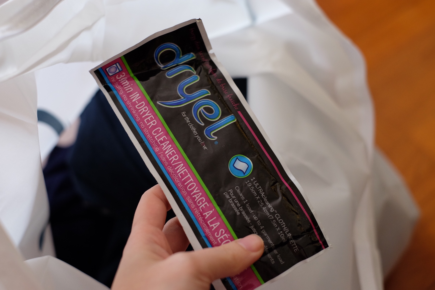 說遠了,這個叫Dryel東西,號稱可以讓你在家裡自己進行衣物乾洗,只要家中有乾衣機就可以。入門裝包括洗衣袋、加強清潔劑和兩片乾洗布,在Amazon訂的話只要$13元美金左右