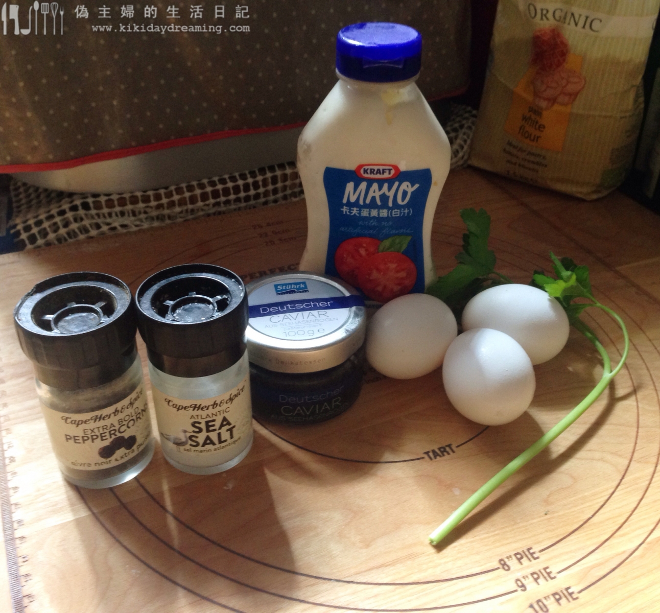 蛋黃挖出來,和蛋黃醬拌勻加鹽、胡椒調味就可以,通常這過程都忍不住偷吃XD