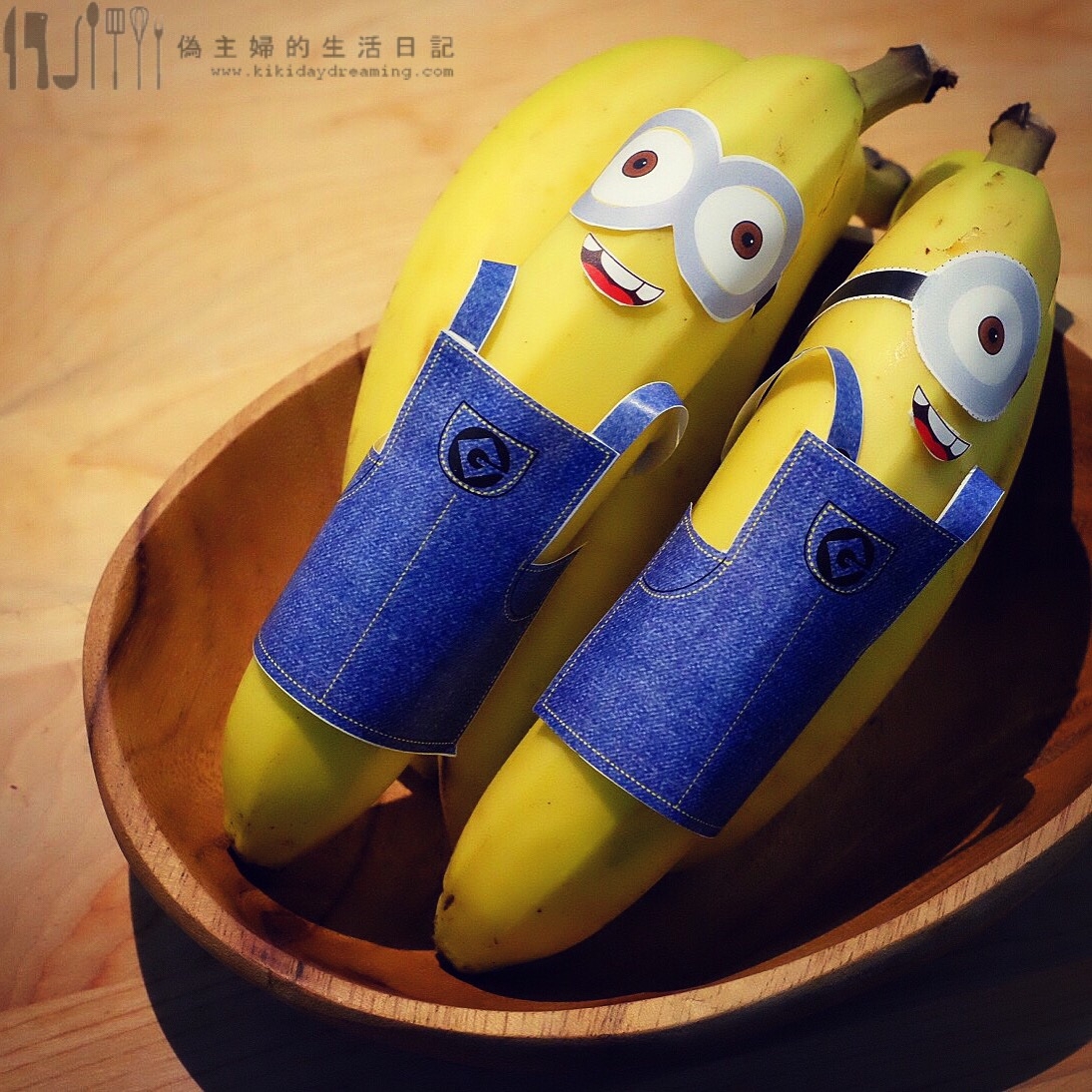 隔天在妞仔的臉書裡看到Minions香蕉裝飾,實在太搞笑一定跟著來做一下呀,嘩哈哈!