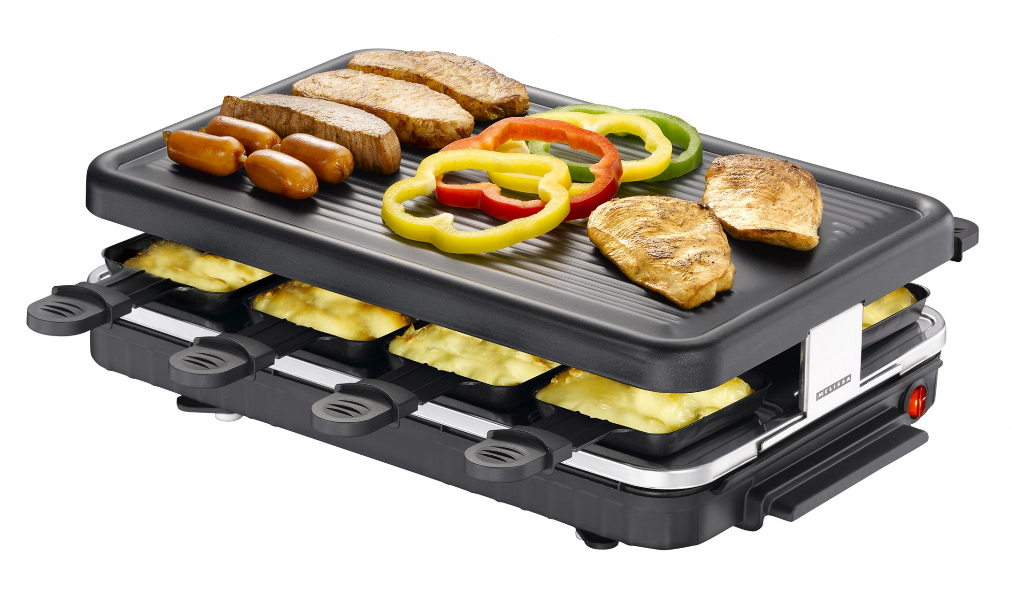 我和美國胃都很喜歡吃瑞士的Raclette芝士,最傳統的吃法就是將車輪般大的芝士切開,把切面放到火爐邊或特製的熱燈下,因為溶點比較低的關係,表面的芝士很快就會融化,用刀輕輕刮下來就可以吃了,半溶流質的芝士真的超美味又邪惡呀。