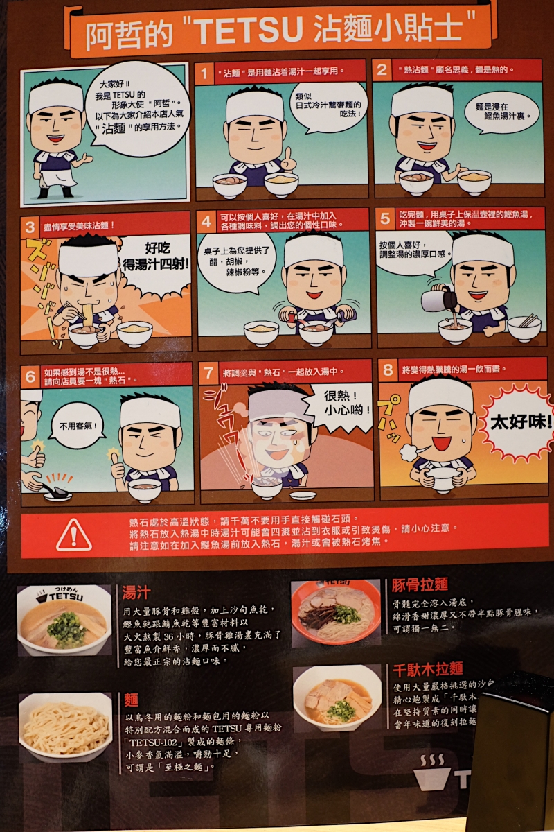 也和東京店一樣,有TETSU創立人阿哲的漫畫,教大家如何去好好享用一碗沾麵