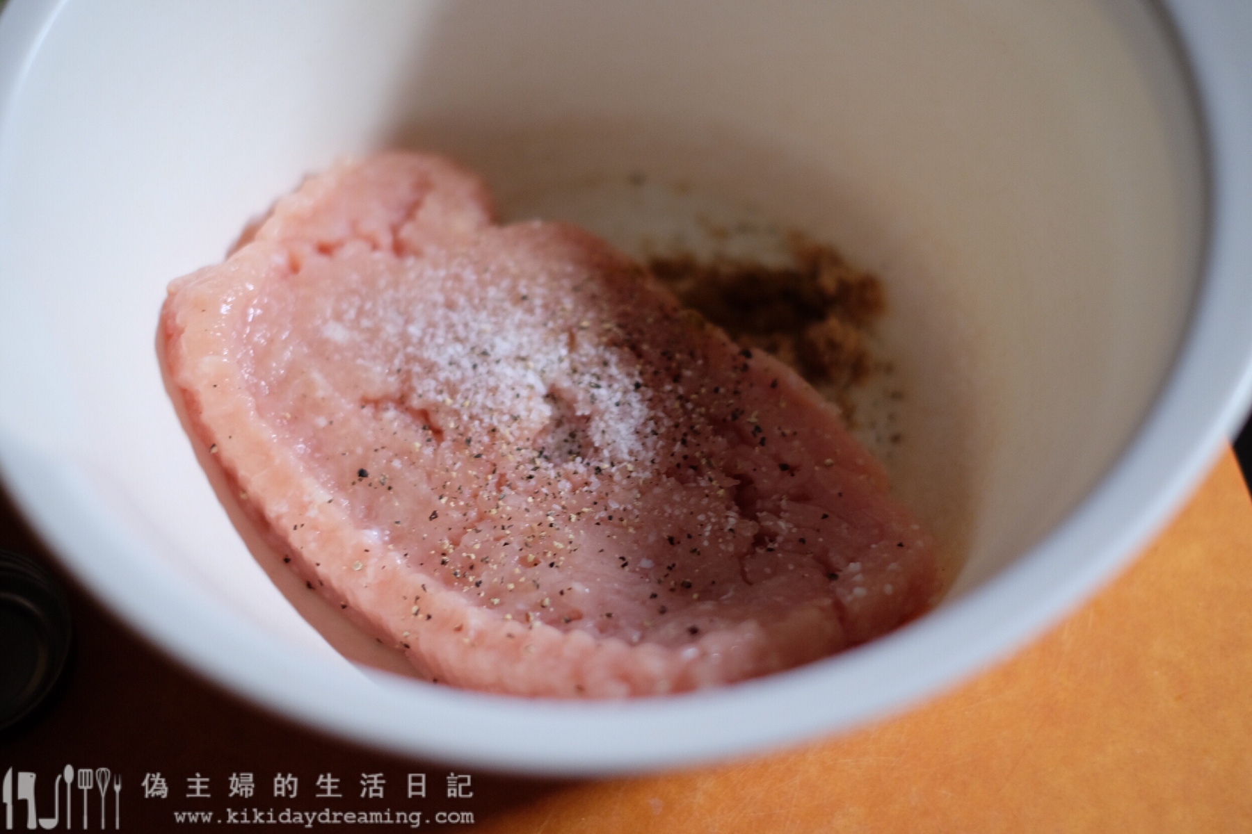 1. 先將雞肉鹽、胡椒、洋蔥鹽、Cumin通通放到大碗裡