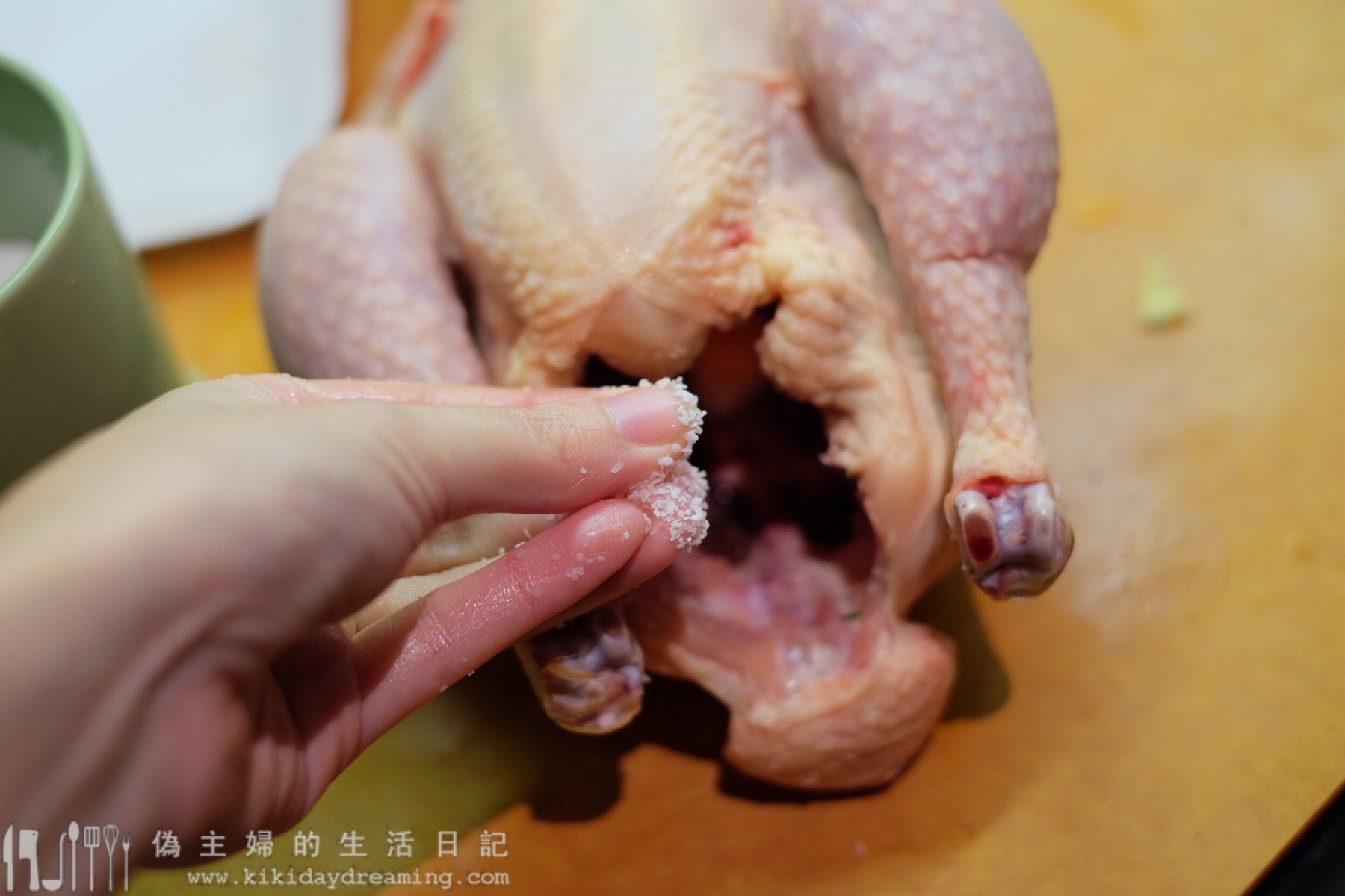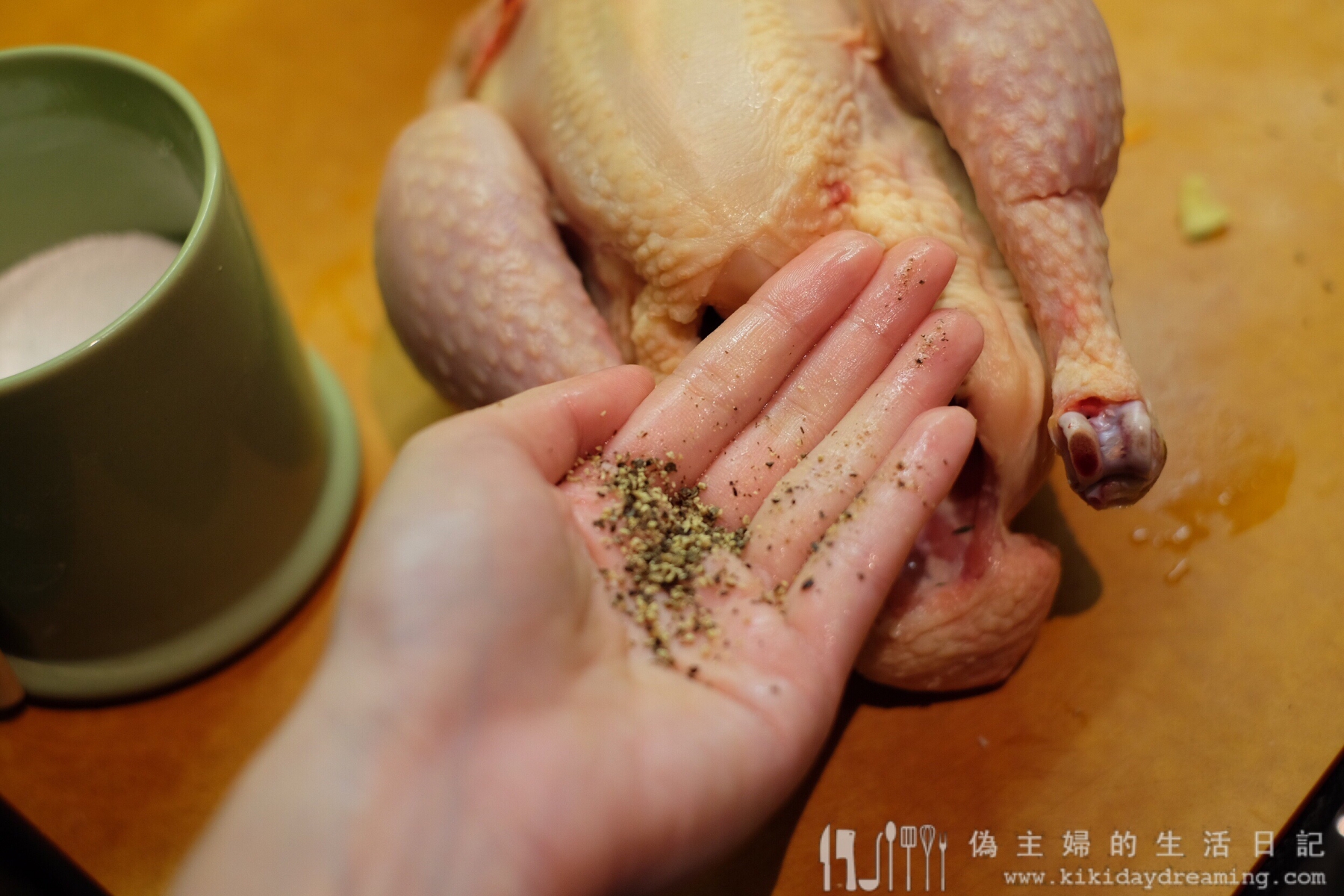5. 鹽和胡椒也均勻抹進雞腔內