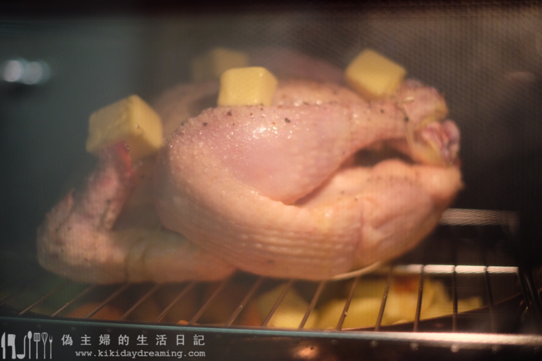 11. 再灑上胡椒,在雞上放幾塊牛油