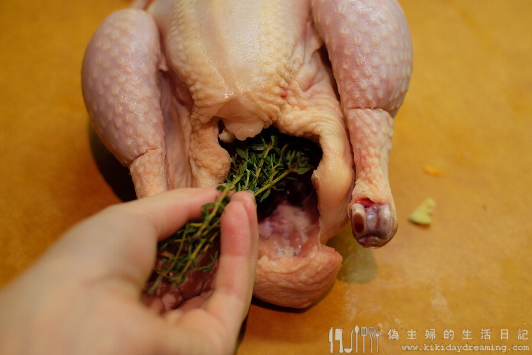 4. 百里香也是,抹到雞腔內再塞在裡面