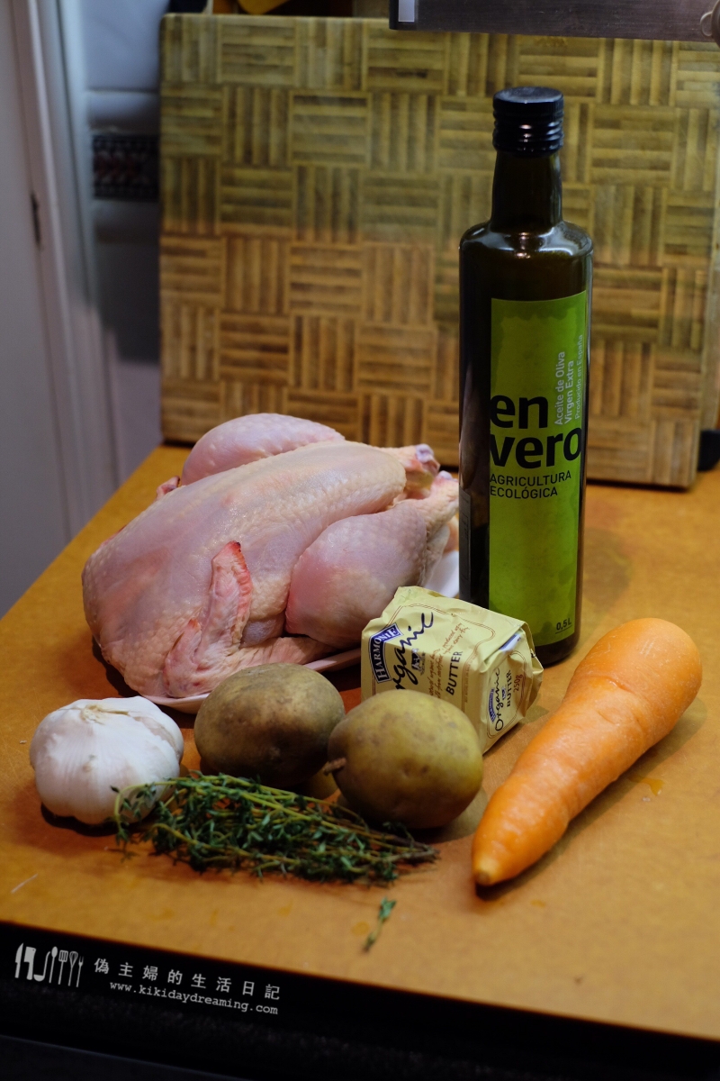 新拍檔第一煮,就來烤隻全雞吧,反正這機有個全自動SuperSteam烤全雞+馬鈴薯的功能,很想試一下。烤雞我常常做,只要掌握一兩個小技巧,就一定可以烤出一隻香噴噴皮脆的烤雞,食譜在我的書BB《小廚房煮大餐》也有收錄,這裡也寫一下