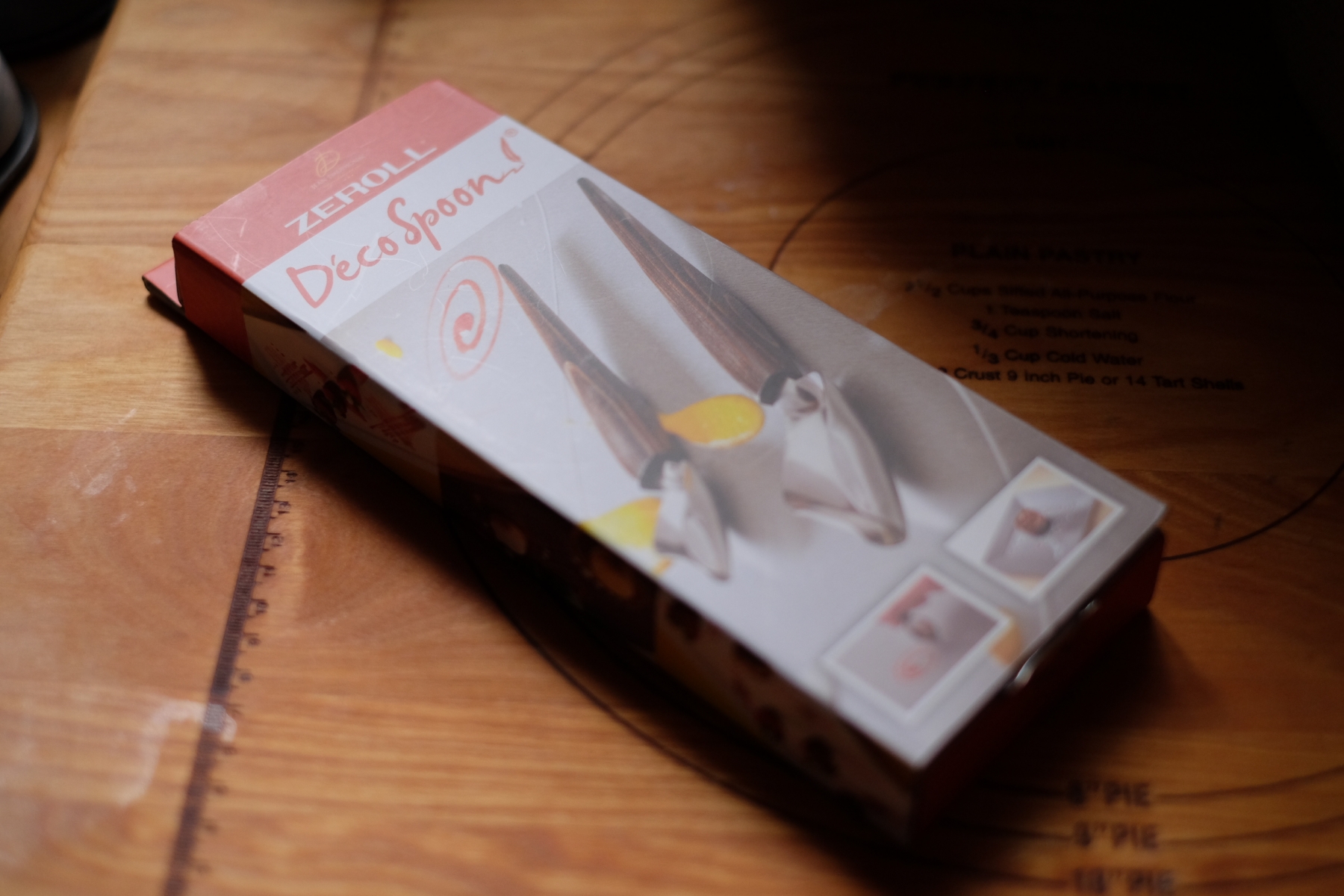 有一天回偽家吃飯時,甜點師偽弟問我有沒有買一支畫醬汁專用的匙,說我做菜擺盤時一定會用到。於是當然發生了:上網看看→非常有興趣→下一秒就下單敗了的戲碼XD。