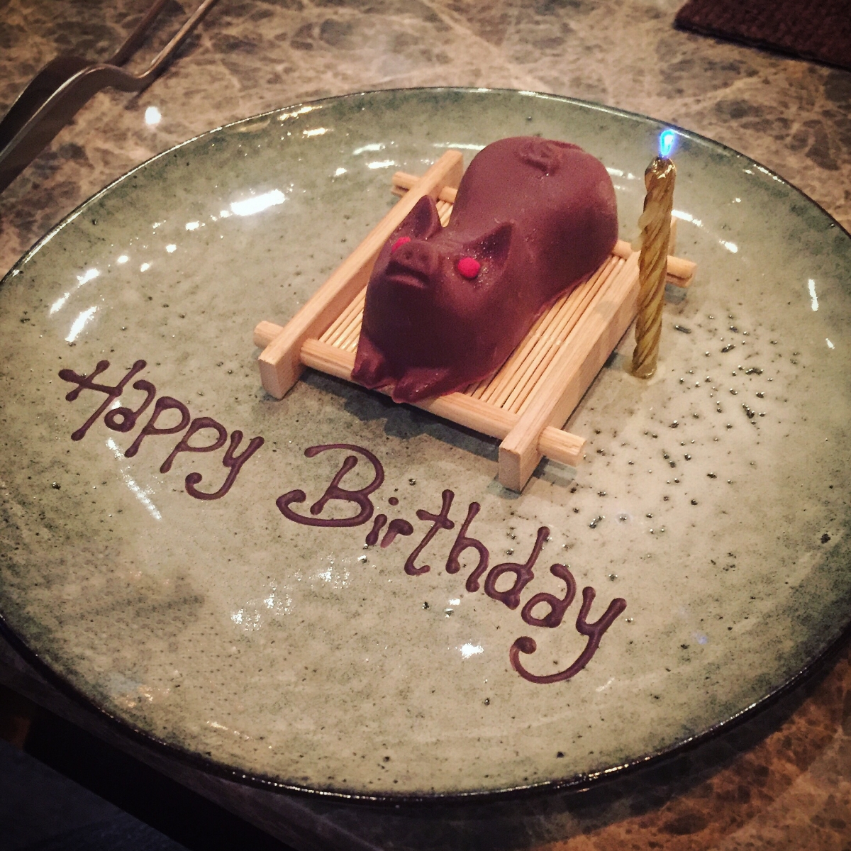 每一位在餐廳慶祝生日的客人都會獲得很搞笑的小豬生日蛋糕一隻,真的很可愛呢~
