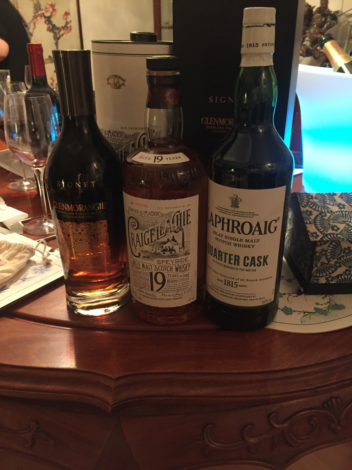吃到一半中環寶寶小姐也剛下機趕過來參加,帶了Whiskey,大家猜猜三瓶中我喜歡哪一瓶?