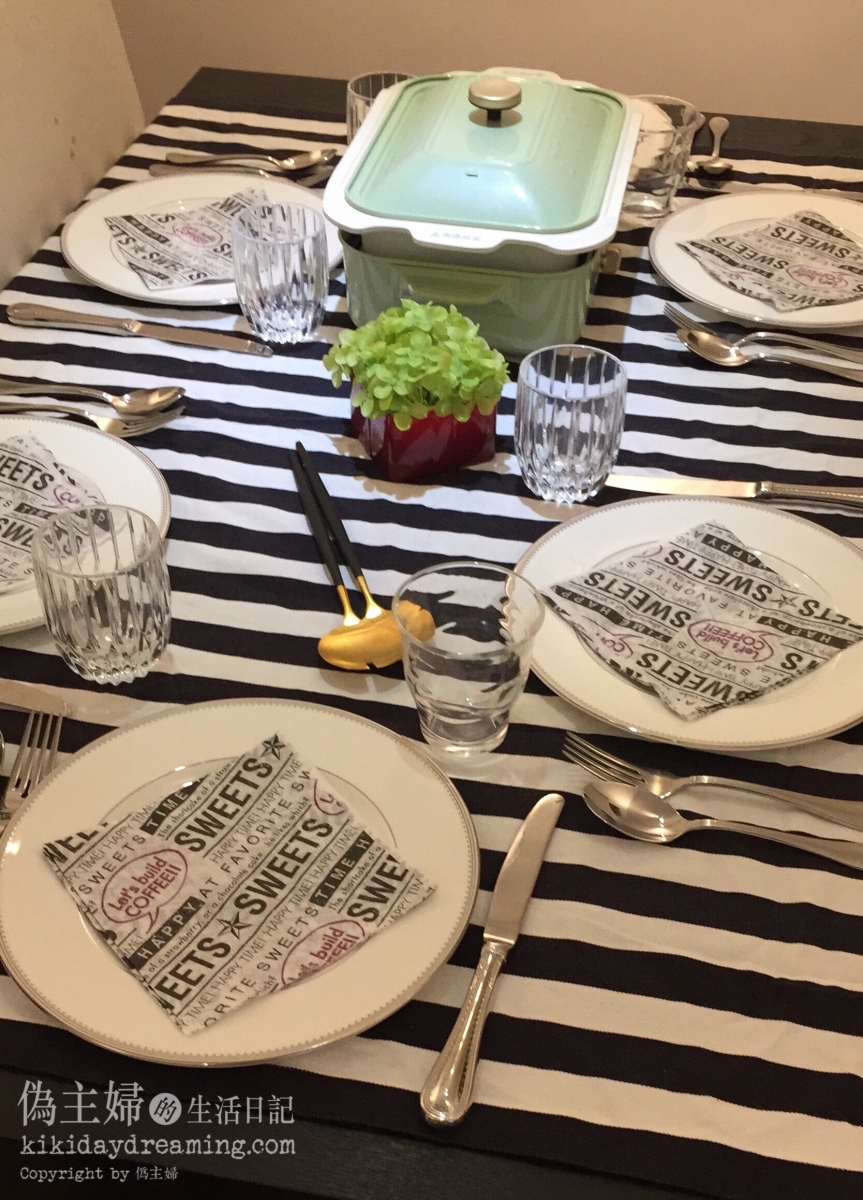 還加入了馬太的媽媽、姪女和維媽的寶貝兒子維哥,三大一中一小來我家吃飯。晚餐在星期五,要上班我我如果下班才開始準備是根本不夠時間的,所以大部份的前置準備工作都在前一天完成,連餐桌都在睡前擺好