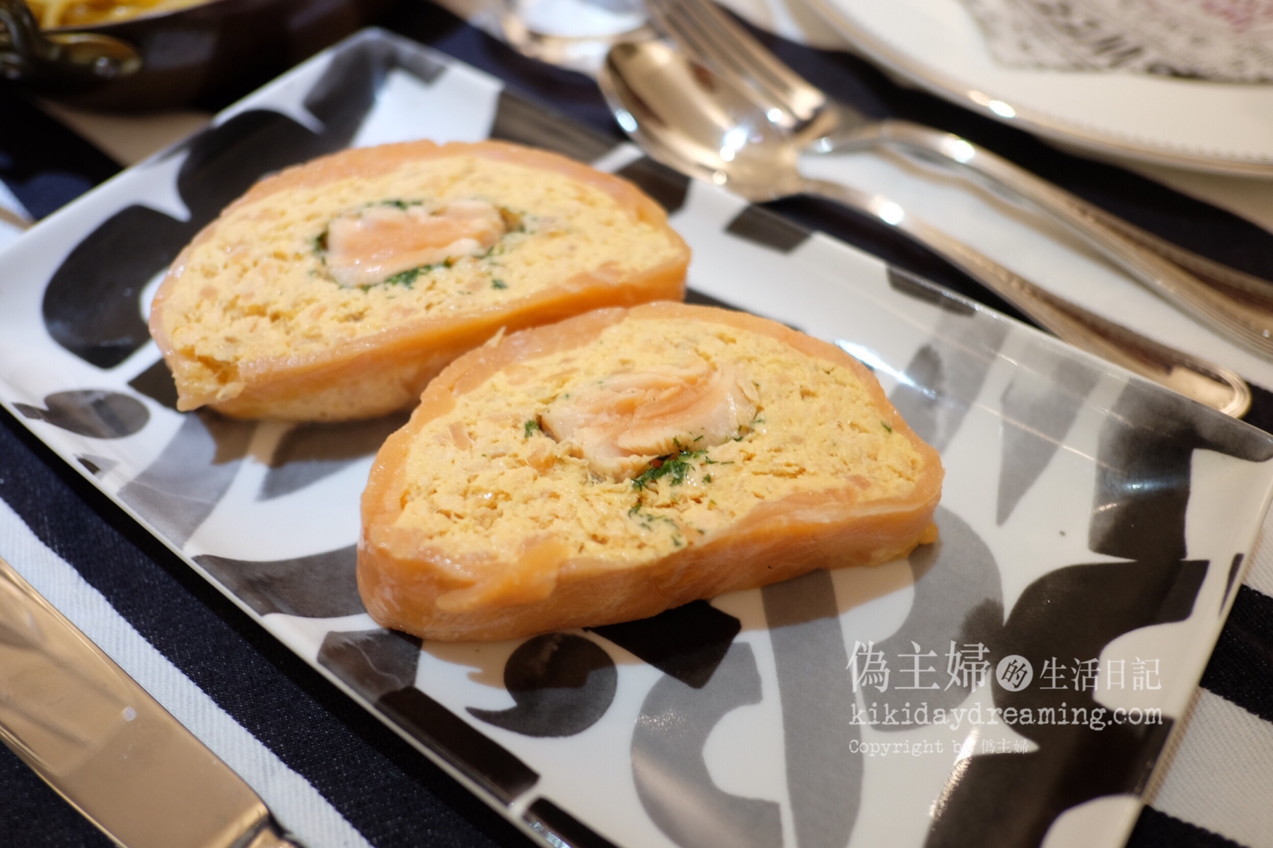 因為在Escoffier學廚的關係,冰箱裡全是上課做的剩菜,很多時只有我和美國胃二人之力根本吃不完很浪費,所以也拿出來給大家幫我清冰箱。這是剩菜一號三文魚凍批Terrine